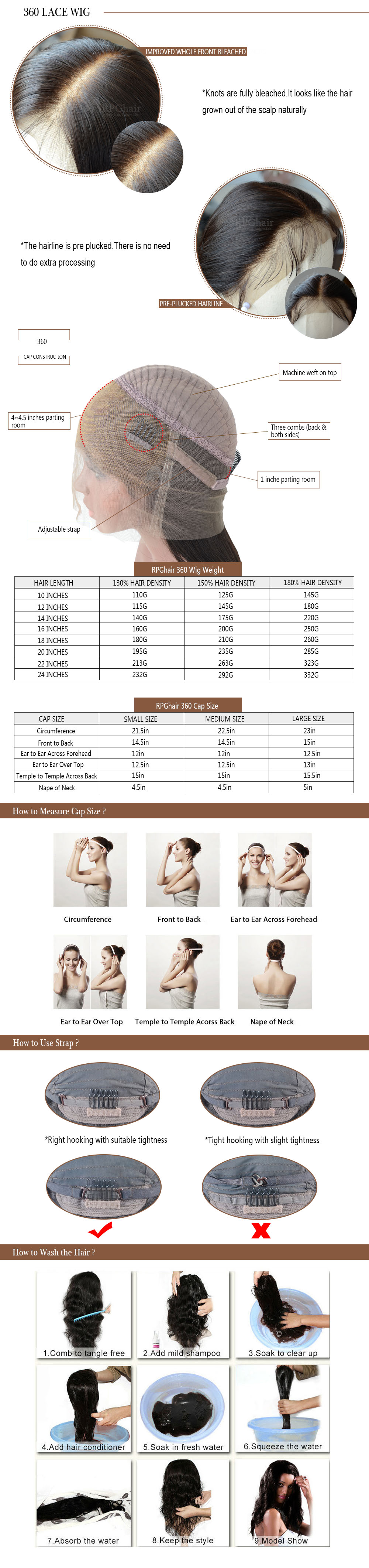 For 360 lace wig length, the lace area around the wig is 2 inches shorter than the top machine bundles. If the 360 lace wig is 10 inches on the option, it is made by 8 inches 360 lace front around the wig, the top is 10 inches machine bundles. Please check below our website statement for this special 360 lace cap construction.